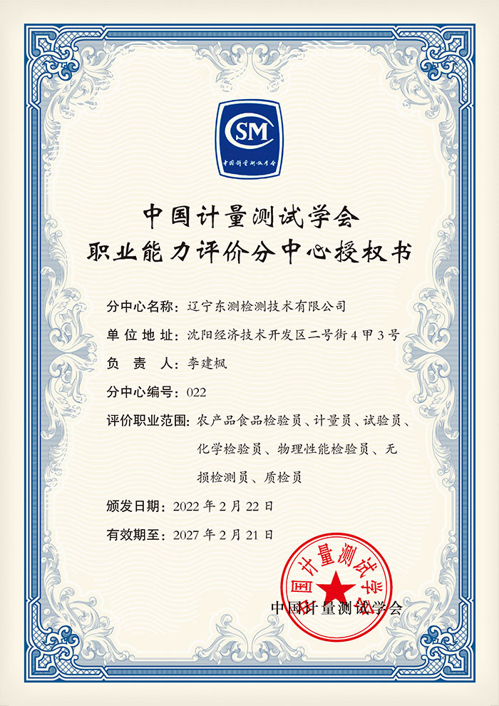 中國計(jì)量測(cè)試學(xué)會(huì)職業(yè)能力評(píng)價(jià)分中心授權(quán)書